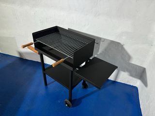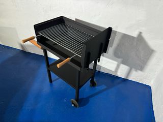 Barbacoa de metal con ruedas y asas de madera. Solo necesita una mano de pintura por ser mas estética o ni eso. - Estructura robusta. - Asas de madera para un mejor agarre. - Ruedas para facilitar su transporte. - Medidas 53x103x94 cm