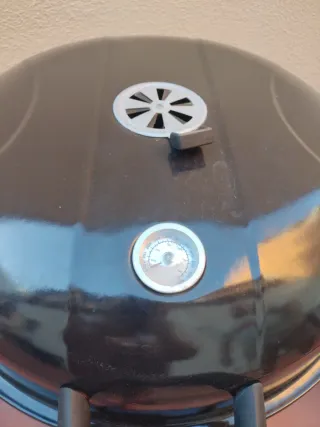 Barbacoa portátil con un diseño moderno y funcional. Ideal para disfrutar de comidas al aire libre. - Tapa con ventilación. - Termómetro integrado. - Asas laterales para facilitar el transporte. - Ruedas para moverla fácilmente. REGALO: FUNDA