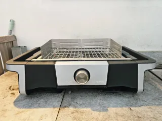 Barbacoa eléctrica de sobremesa Se ha utilizado sólo 3 veces. Perfecto estado. Excelente producto. SENOA P8113 Boost Parrilla de acero inoxidable para interior y exterior, parrilla eléctrica con zona Boost. Potencia 3000w. Medidas: 41 x 62 x 25 centímetros. Amplia superficie de cocción: 996 Centímetros cuadrados. Origen: Alemania diseño moderno y funcional. - Parrilla de acero inoxidable. - Control de temperatura ajustable. - Bandeja recogegrasas. - Pies antideslizantes.