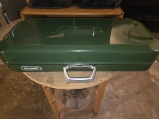 Barbacoa portátil de la marca Cramer. Ideal para llevar de camping o usar en exteriores. - Diseño compacto y plegable. - Asa para facilitar el transporte. - Acabado en color verde.