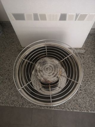 Barbacoa semi nueva un sólo uso. De diámetro 42cm y las patas 58cm. No son como las que venden ahora, está es fuerte, sólida.