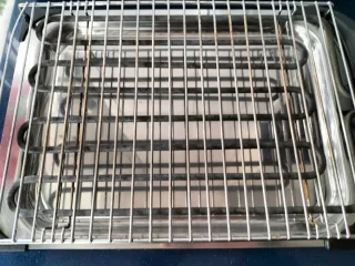 Barbacoa eléctrica de la marca Tata, la base es de acero inoxidable y ahí va el agua.