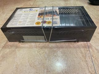 Barbacoa portátil para picnics y exteriores. Pequeña para 3/4 personas. Medidas 45 cm x 22,5 cm Sin estrenar. - Diseño compacto y fácil de transportar. - Rejilla de cocción. - Ideal para disfrutar de parrilladas al aire libre.