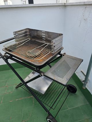 Barbacoa para carbon, acero inoxidable , regulacion de llama mediante apertura de aire, hueco para pastilla de encendido, consiguiendo asi su rapido encendido y funcionamiento, bandeja recogida de ceniza. Costo 160 Euros en Leroy Merlin y ha sido utilizada una sola vez. No tiene grasa y esta completamente limpia y preparada para su uso. Incluye todos sis accesorios e instrucciones de montaje. La marca de la barbacoa es muy conocida Marca Ompagrill venus 480 Pro Grill. En amazon esta ahora a 144 un poco mas revajado del precio que me costo a mi. Precio algo negociable