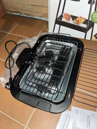 Barbacoa eléctrica grill de la marca Knhuner, ideal para disfrutar de tus comidas al aire libre. - Incluye rejilla. - Bandeja auxiliar. - Patas desmontables.