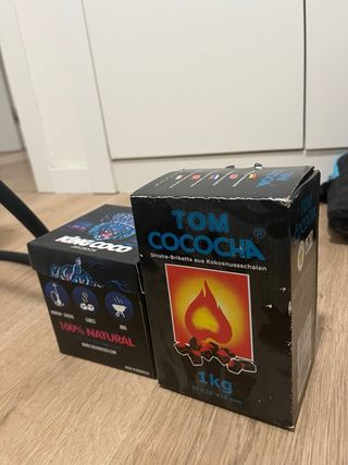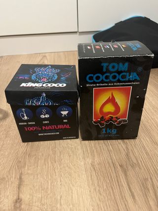 Dos cajas de carboncillos para barbacoa. - Marca King Coco, 100% natural. - Marca Tom Cococha, 1kg. - Fabricado en Indonesia.