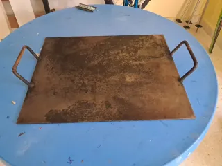 Plancha para barbacoa con asas. Medidas 50x40cm - Fabricada en metal resistente. - Color negro y marrón.