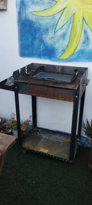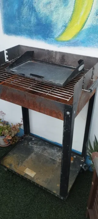 Barbacoa americana de metal, en buen estado. Ideal para asados al aire libre. Se puede mandar más fotos está un poco sucia de estar en la calle,pero está en buen estado - Dos parrillas para cocinar. - Diseño clásico americano. - Estructura robusta y resistente.