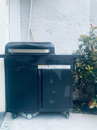 Barbacoa en color negro y plateado. Usada una sola vez - Estructura de metal resistente. - Diseño moderno y funcional.