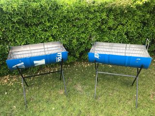 Parrilla para disfrutar con amig@s. Fabricadas con barriles metálicos reciclados, estas dos barbacoas son resistentes y fáciles de transportar gracias a su diseño ligero. Parrilla reforzada Estructura de metal resistente. Diseño portátil y compacto.