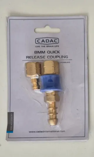 Acoplamiento doble para un fácil acoplamiento de la manguera de gas con un solo 'clic'. Con válvula de auto sellado para un uso seguro. El doble acoplamiento lo hace adecuado para su uso en 2 dispositivos diferentes. Nuevo a estrenar. - Conexión de 8mm. - Accesorio para barbacoa.