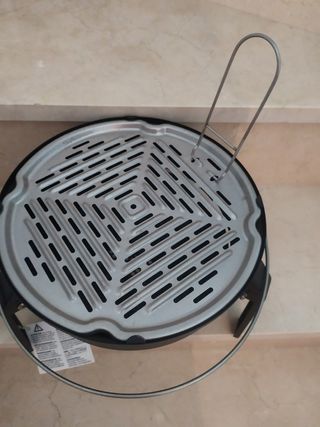 Barbacoa SAIVOD, ideal para usar en interiores sin generar humo. Cuenta con un diseño moderno y compacto. Usada solo 2 veces - Acabado en negro y detalles plateados. - Perilla de control de temperatura.