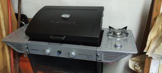Barbacoa de gas en perfecto estado, usada solo 3 veces. Es una barbacoa negra, de metal, con un diseño elegante y moderno. Costo 900 euros , y está usada 3 veces. - Incluye 4 quemadores. - Dispone de un cajón inferior. - Termómetro integrado en la tapa. Se vende por disminución de la familia.