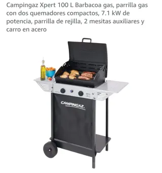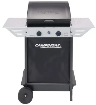 Barbacoa de gas Campingaz en color negro y plateado. Perfecta para disfrutar de tus comidas al aire libre. - Dos quemadores. - Bandeja recogegrasas. - Ruedas para facilitar el transporte. Incluye conexión para butano y piedras lava Entrega en mano Parla