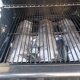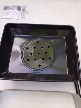 Churrasquera para asar carne sin generar humo. Se pone agua en la zona inferior y se pone al fuego. Para cocinas de gas. Usado 3 veces.