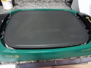 Barbacoa eléctrica Fagor - Superficie de cocción antiadherente. - Diseño moderno en color verde y negro.