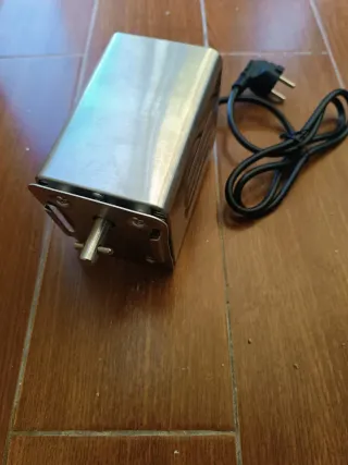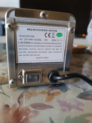 Motor eléctrico para barbacoas, ideal para asar carnes y pollos. - Carcasa de metal. - Eje de acero inoxidable. - Incluye cable de alimentación.