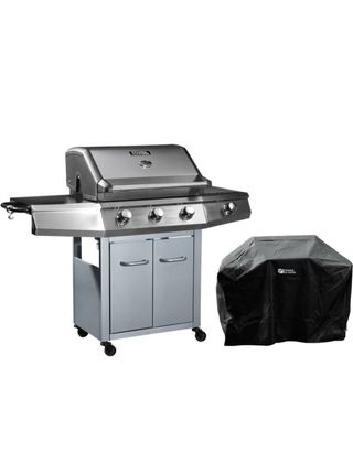 Barbacoa a gaz 4 quemadores a estrenar (1 lateral) - Acero - Superficie 67 x 44 cm - Medidor de temperatura incorporado - Espacio de almacenamiento - Cubierta protectora incluida - Gas propano o butano