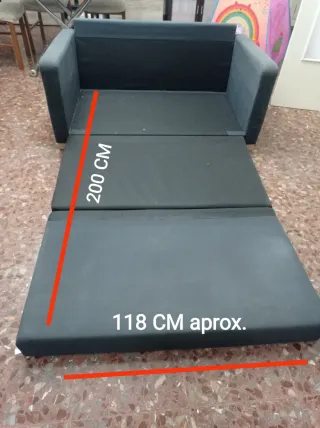 Prácticamente sin uso. La tapicería está desgastada ,pero las fundas son lavables y la espuma interior está de PM. Sólo contando con la espuma ya vale la pena ,te pueden valer los colchones para la furgo y la estructura del sofá para hacer una barbacoa o q se tumben los perros ,pero te lo llevas entero