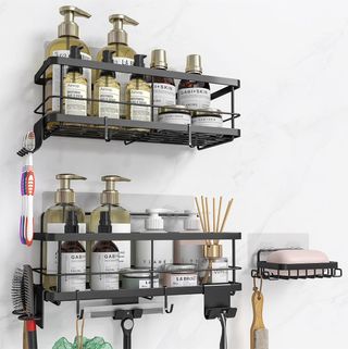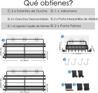 ZAVNZELF Estantería de ducha sin taladrar, estantería de ducha [9 accesorios de baño extraíbles], organizador de baño de acero inoxidable, cesta de ducha, soporte de ducha, Z-3-5