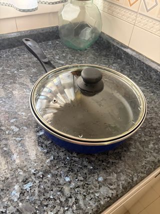Sartén azul con tapa de cristal