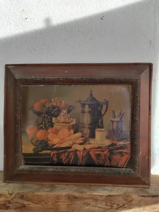 Cuadro Bodegón Peces y Mariscos antiguo