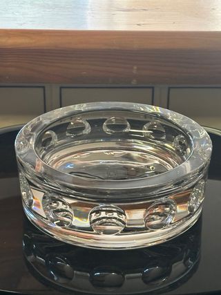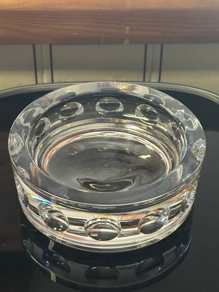 Elegante cenicero de cristal de la marca JG Durand. Su diseño transparente y sus detalles lo hacen una pieza decorativa. - Diseño con círculos. - Base reflectante.