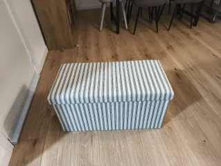 Práctico baúl de almacenaje con un diseño de rayas clásico. - Diseño de rayas verticales. - Cubierta acolchada. Tengo 2, me costó 50€ cada uno. Vendo los 2 por 40 y 1 solo por 20€