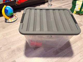 Lote de 3 Cajas de almacenaje SAMLA de IKEA con tapa. Están un poco rozadas las tapas, por lo demás están impecables (pongo fotos de las 3 tapas). Sólo venta en persona - Medidas: 79x57x18 cm. - Capacidad: 55 L. - Material: Plástico resistente.