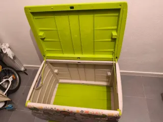 Baúl resina con medidas 80 x 61 x 53 cm y capacidad de 260 L. Ideal para guardar juguetes. Perfecto estado