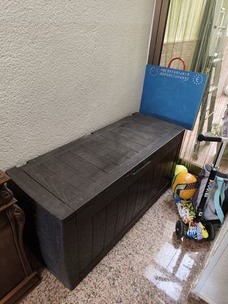 Arcón de resina con gran capacidad de almacenamiento. Es nuevo sólo tiene una esquina rota se ven en las fotos - Color negro. - Material de plástico resistente. - Modelo de 270 litros.