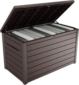 Keter Brushwood - Arcón exterior, Baúl almacenaje, Capacidad 454L, Resina, Color Marrón, Ordenación jardín y terraza, 69.7 x 145 x 60.3 cm Marca Keter Color Marrón MaterialPolipropileno Inyectado / Madera Función especialApilable EstiloBrushwood