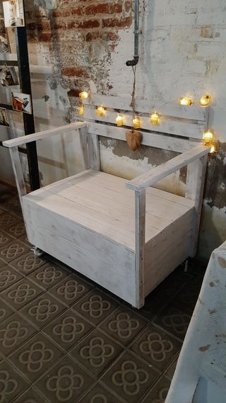 baúl con reposabrazos, realizado en madera recuperada de origen sostenible ♻️, y con almacenaje en su interior, el pvp corresponde a una medida de 120*40*40, aunque son totalmente personalizables en acabados y medidas. pvp en función de las medidas te animamos nos sigas en facebook e instragram para ver nuestros productos y novedades made with love by sonia jan muebles sostenibles, cuidamos del planeta🌏 asociación mujeres carpinteras contacta con nosotras ☎️ 610512677