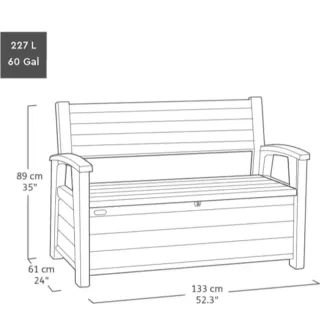 Keter Brushwood - Arcón exterior, Baúl almacenaje, Capacidad 454L, Resina, Color Marrón, Ordenación jardín y terraza, 69.7 x 145 x 60.3 cm Marca Keter Color Marrón MaterialPolipropileno Inyectado / Madera Función especialApilable EstiloBrushwood