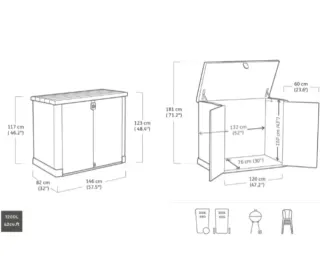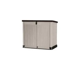 Nota : El producto completo, una pieza ha sido dañada por logística. ( La pieza ha sido reparada. ) mirar las fotos. No afecta a su funcionamiento. Keter Sio Pro -Cobertizo de jardín Exterior, Capacidad 1200L, Color Beige/Marrón, 145,5 x 82 x 123 cm Marca Keter Color Beige/Marrón Material Plástico Dimensiones del producto 82f. x 145,5an. x 123al. centímetros Peso del producto 23,9 Kilogramos Estilo Nuevo Store-It-Out Pro