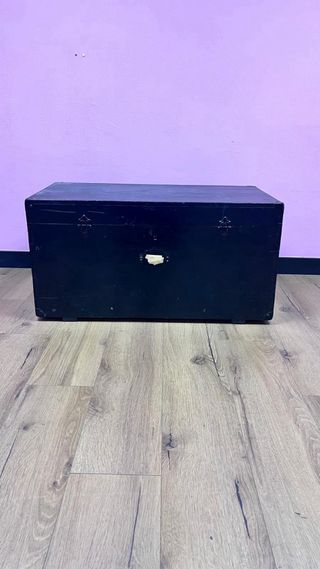 Este baúl antiguo es una pieza decorativa y funcional. - Fabricado con madera y detalles metálicos. - Color exterior negro y detalles en marrón.