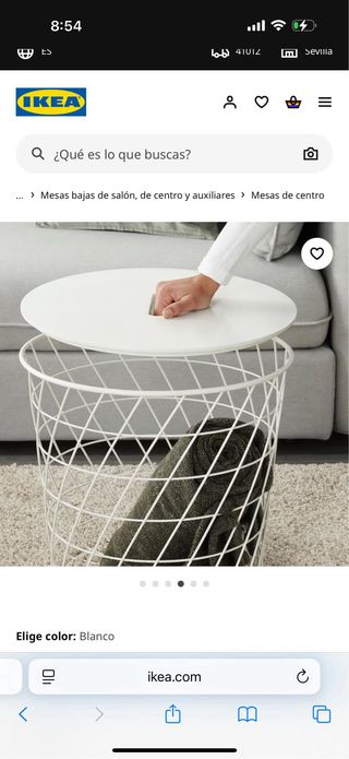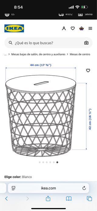 Mesa auxiliar de almacenaje de IKEA. Es blanca y de metal. Tiene un diseño elegante y ligero. - Medidas: 44 cm (diámetro) x 42 cm (alto) - Perfecta para espacios reducidos.