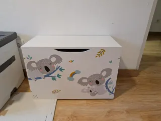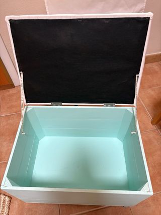 Baúl Ikea par habitación infantil. Tiene las marcas de uso que se aprecian en las fotos pero funciona perfectamente. Muy espacioso - Azul y blanco. - Acabado liso.