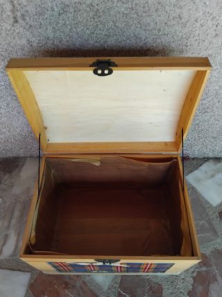 Conjunto juvenil para habitación infantil o juvenil. En muy buen estado - Baúl de madera con diseño infantil. - Cabecero a juego.