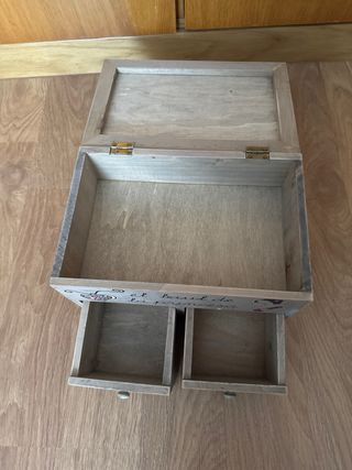Caja de madera infantil color natural para almacenaje. Muy versatil por sus medidas. Puede pingarse o barnizarse al gusto