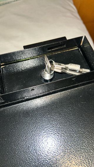 Pequeña caja fuerte metálica con llaves