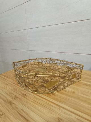 Caja de metal en filigrana dorada. Ideal para guardar bisutería, pañuelos, maquillaje... Muy decorativa. 30 cm largo - 18 cm ancho - 7 cm alto. Hago envío.