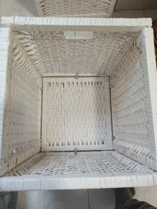 Conjunto de dos cajas de almacenaje de mimbre. - Diseño tejido. - Color blanco.