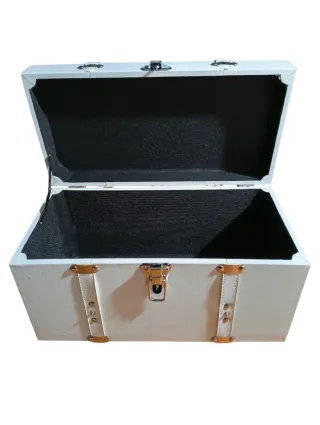 Este baúl es un accesorio versátil con un diseño elegante. - Medidas: 44 x 22 x 24 cm. - Interior forrado en tela negra. - Cierre metálico frontal, se puede añadir candado con llave 🔐.