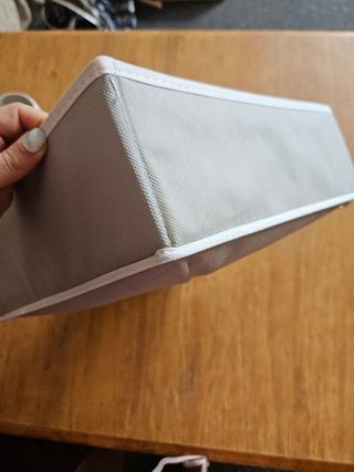 Elegante caja organizadora . Para usos múltiples. - Acabado exterior simula al cuero. - Diseño con costuras blancas. - Cierre metálico frontal. - Con piezas en los compartimentos que se puede usar para insertar joyas, pendientes,...,o quitar las piezas y usar en los espacios, los huecos, incluso se pueden quitar todos los compartimentos y quedar vacío. Ancho 30 cm Fondo 20 cm Alto 8 cm Algo aplastado, pero apenas de aprecia, y colocado encima de la mesa no se ve. Ver fotos.