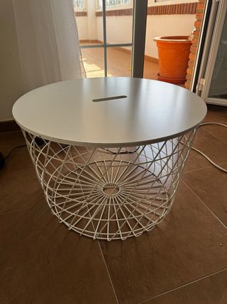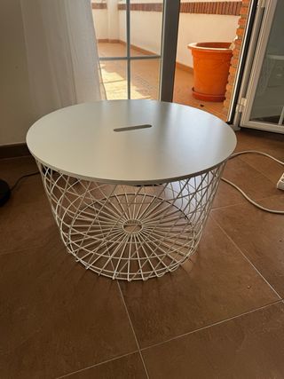 Mesa auxiliar redonda blanca con almacenaje