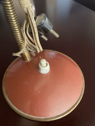 Pequeña lámpara de estilo retro con un diseño encantador. Apta para decoración o para utilizar en recreaciones de escenas finales de los años 50. Preciosa - Base circular. - Pantalla cónica.