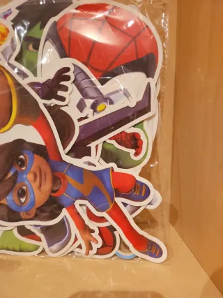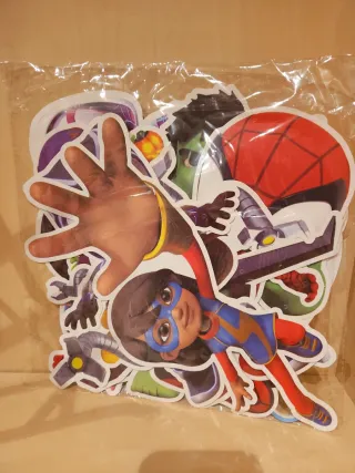 Guirnalda decorativa con personajes de Spidey y sus Amigos. - Diseños variados de los personajes. - Ideal para fiestas temáticas. - Se puede usar como guirnalda, columnas (ver ultima foto) o para decorar con los dibujos sueltos pegados en la pared