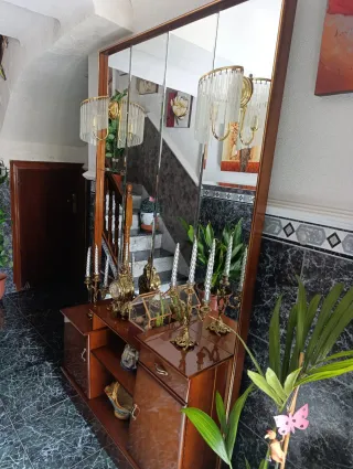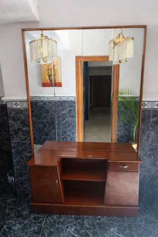 Mueble recibidor entrada madera y dos espejos