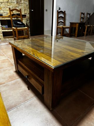Mesa de centro rústica madera y cristal